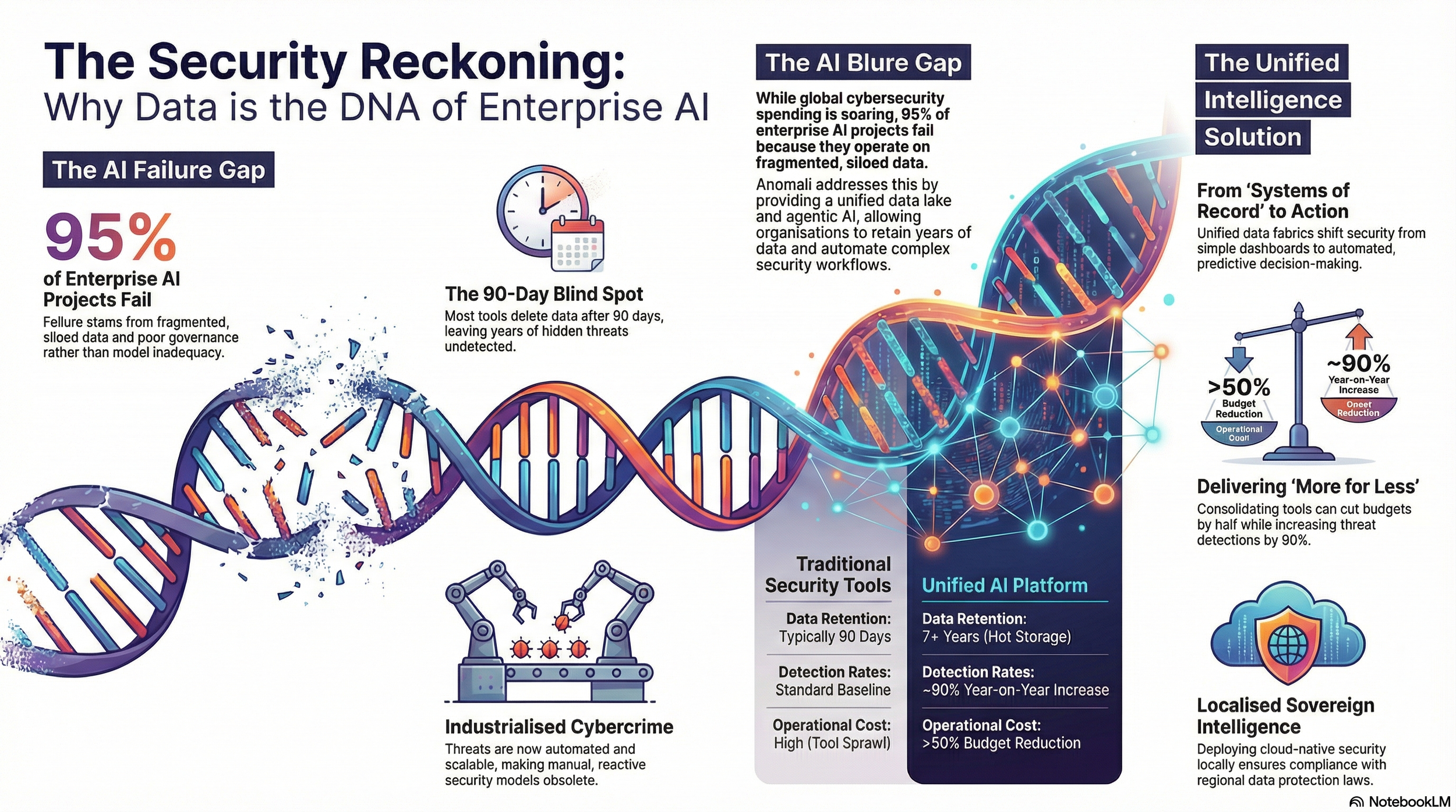 The second, for organisations with the appetite for it, is more radical. One large global financial institution replaced a sprawl of seven or eight separate security tools with the Anomali platform, added an agentic AI layer for analysts, and normalised the data pipeline across petabytes of information. The outcome: budget cut by more than half, detections up approximately 90% year-on-year.