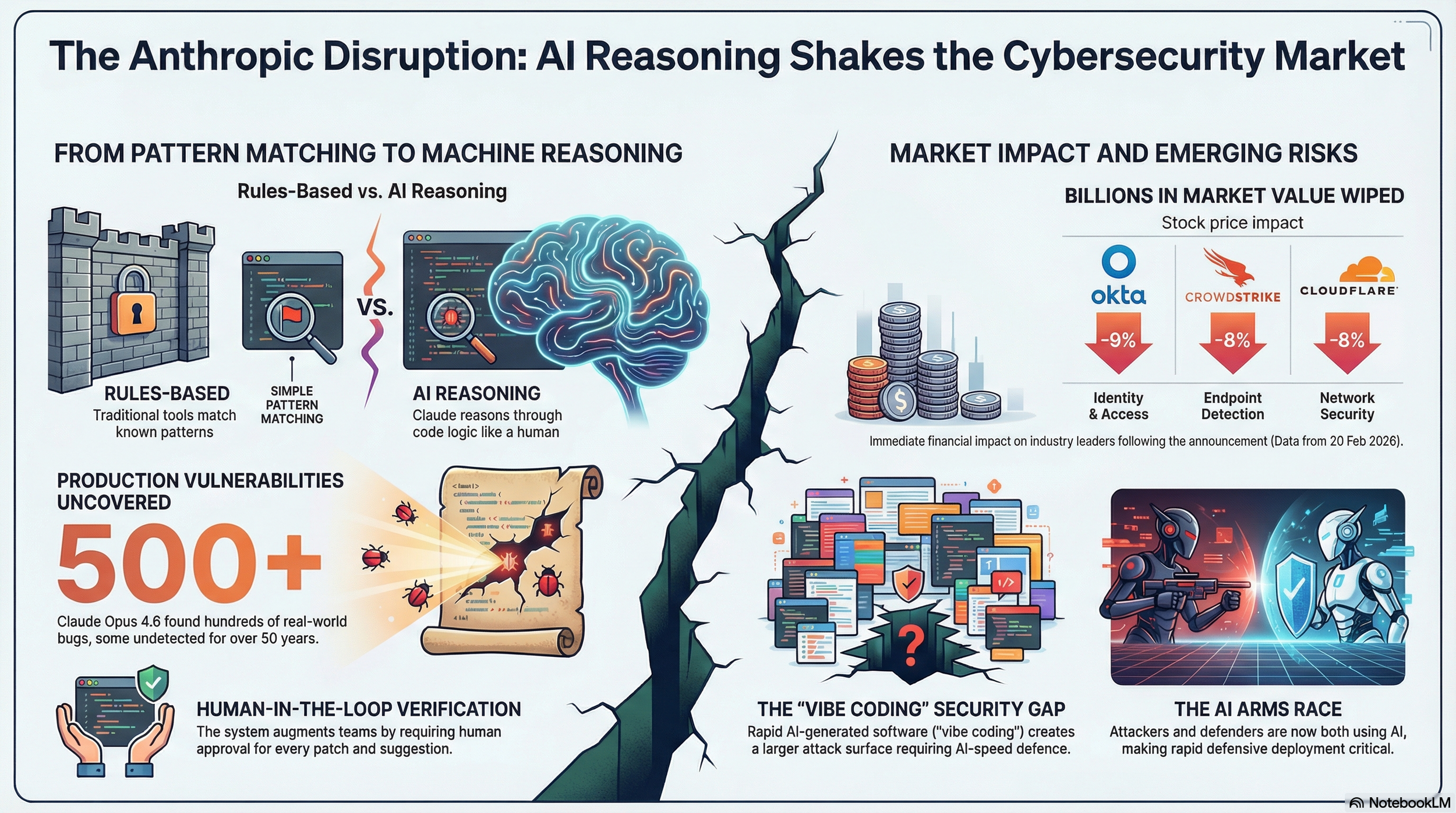 To put it plainly: the market wiped billions of dollars in value from cybersecurity companies in a single session, on the day an AI company announced it could find software bugs. The signal investors were sending is clear - if AI can now perform core security research tasks, the addressable market for specialised security software and services has just been put under serious scrutiny.